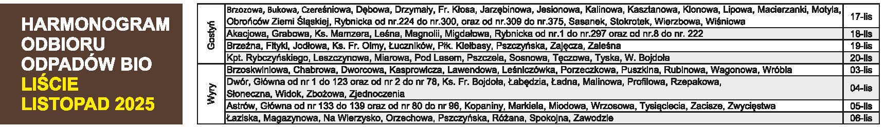 Liście będą odbierane w workach, zgodnie z terminami określonymi w harmonogramie odbioru odpadów komunalnych w 2025 roku.